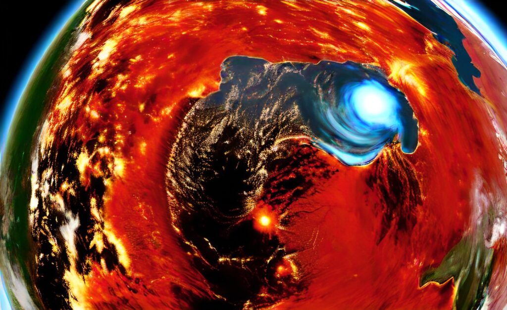 Dazu kommt noch das Brennglas der Atmosphärischen Aufheizung, einerseits schwindet die Zuverlässigkeit der Position und Jahreszeitlichen Abfolge von Hoch und Tief, zum anderen wirkt die höhere Energiedichte in der Atmosphäre für Waldbrände, und Trockenheit in der Region, wie ein Laser der bestimmte Regionen auf der Erde verbrennt. Wir haben lebenswichtige Regelsysteme des Planeten-Systems zerstört. Das muss sofort mit vernünftigen Maßnahmen korrigiert werden.